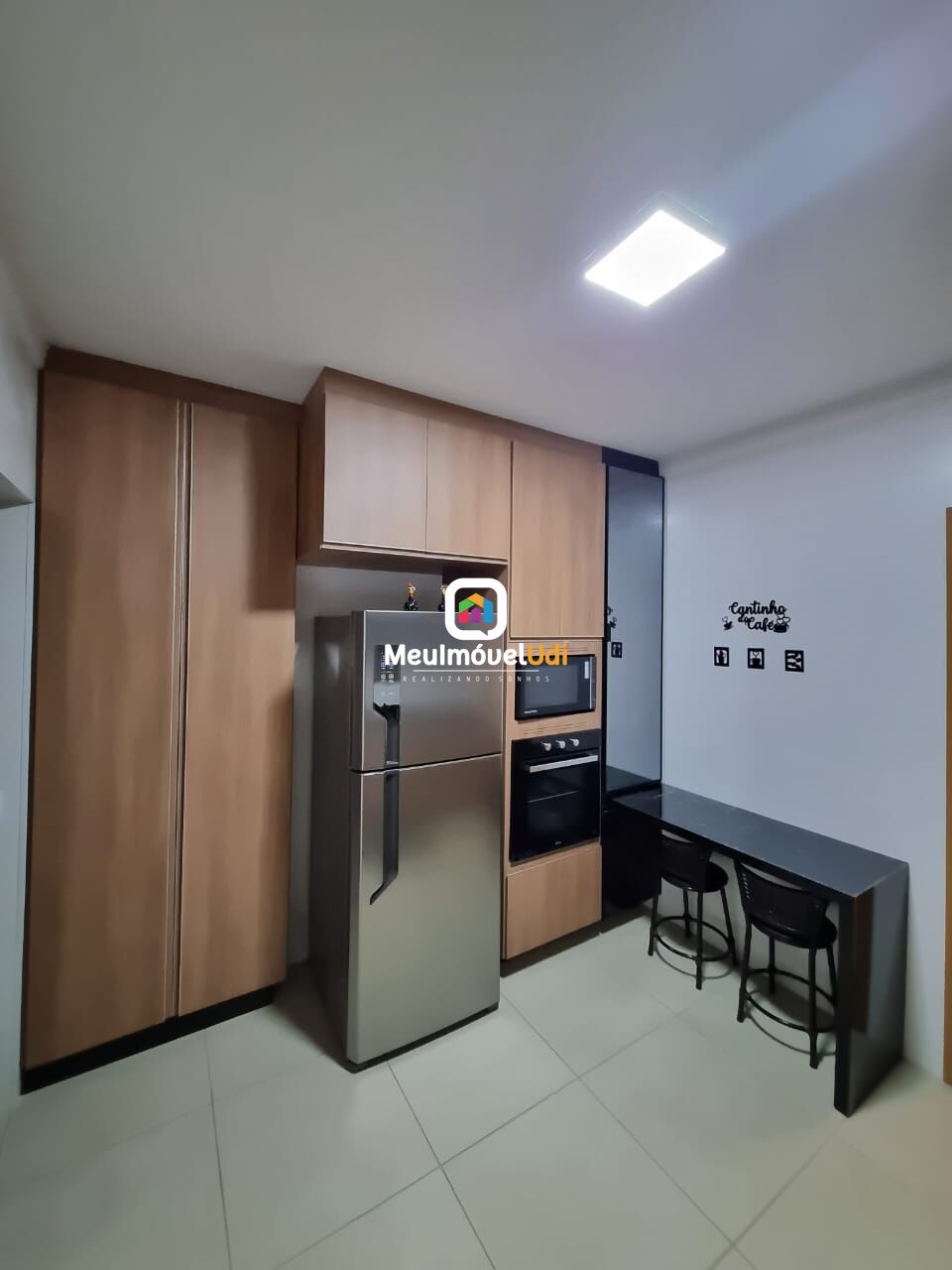 Cozinha americana com armários planejados;