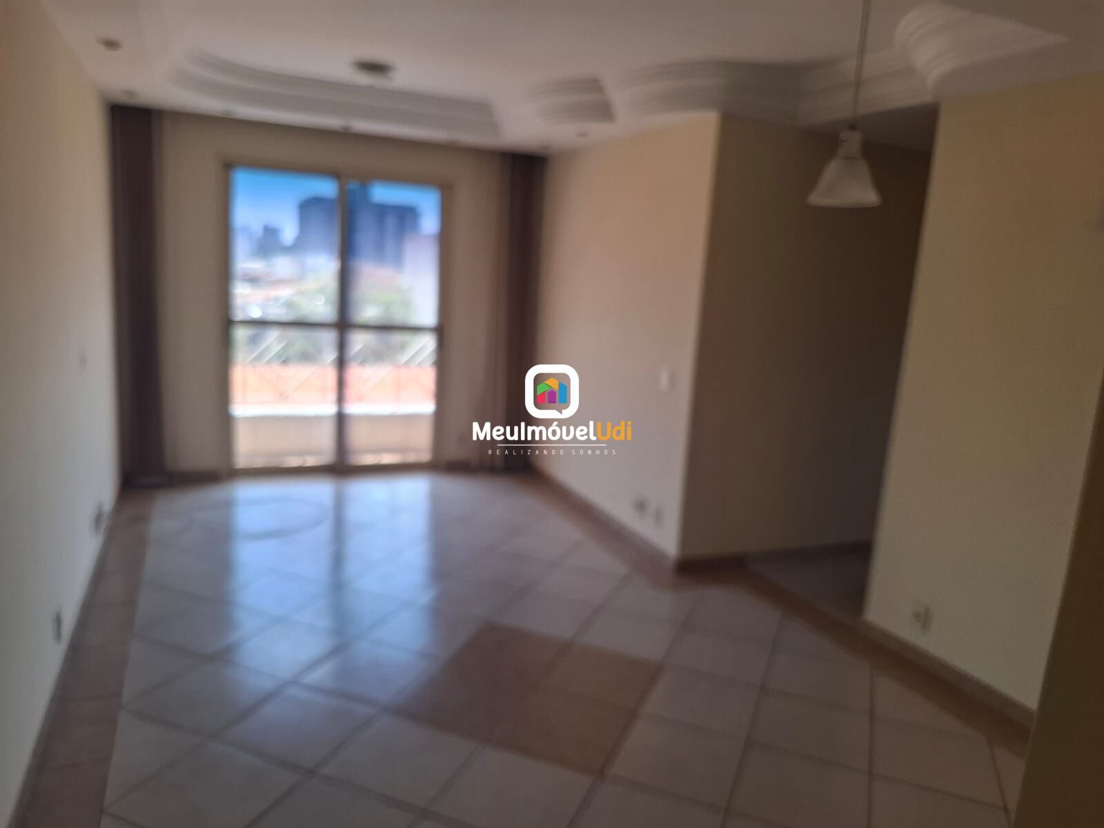 Sala ampla em dois ambientes com sacada;
