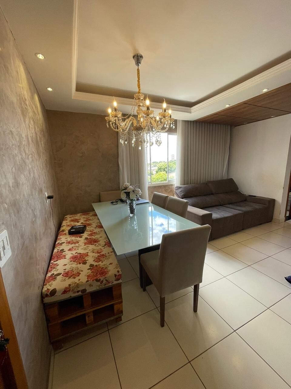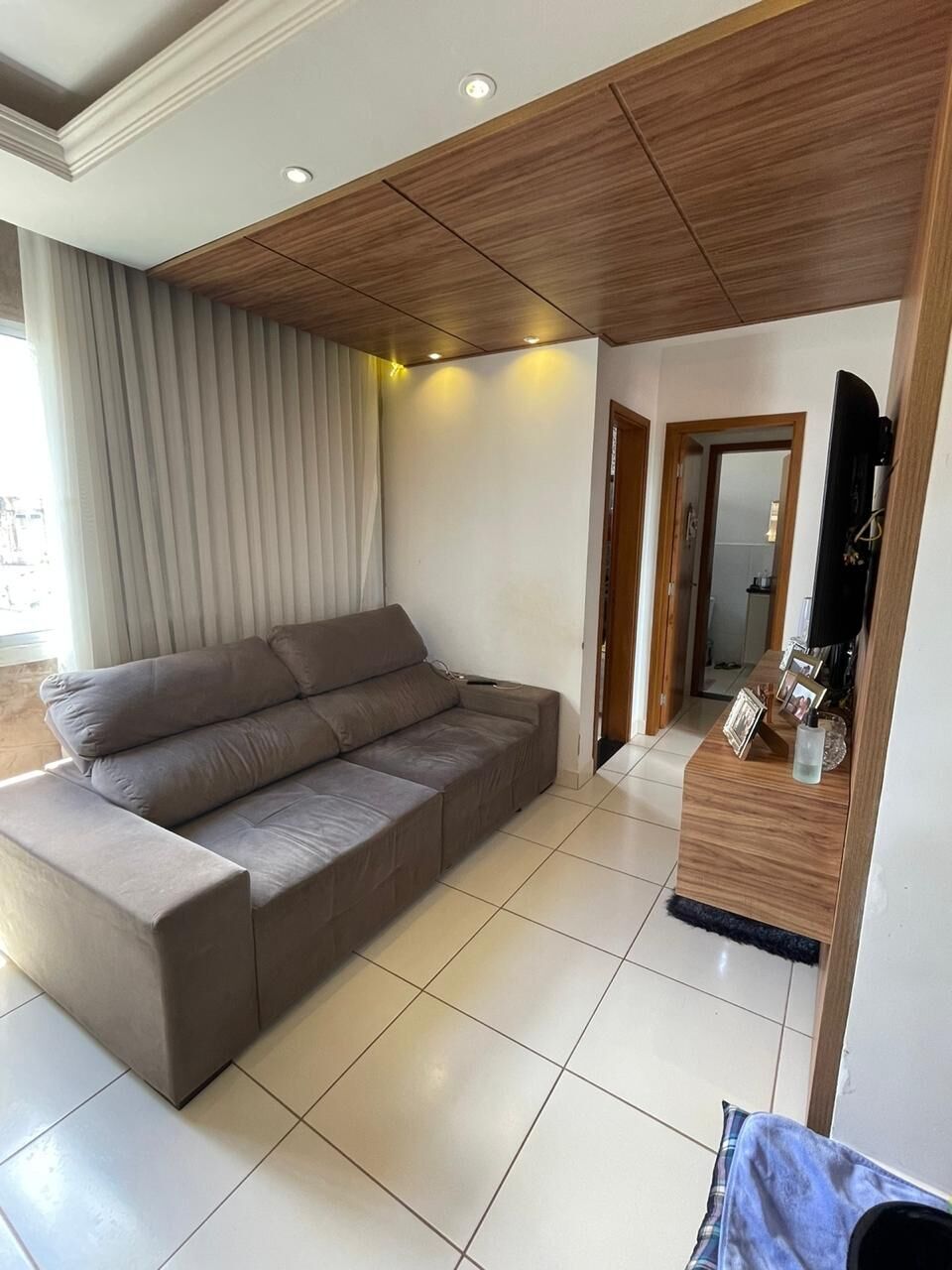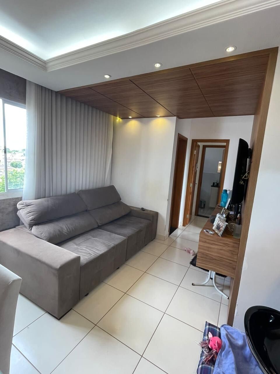 Sala ampla com sanca em gesso;