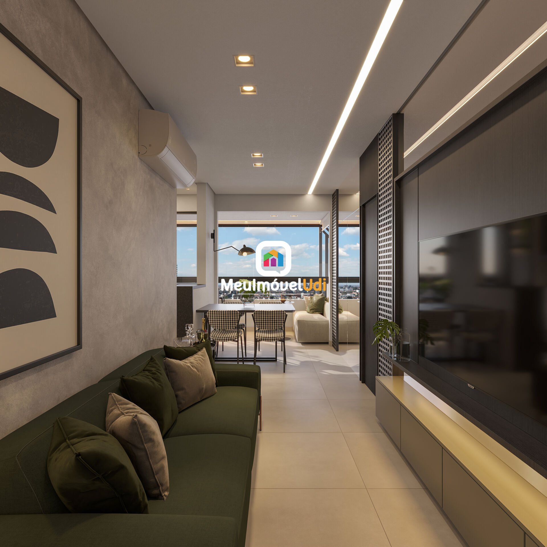 Sala ampla em dois ambientes;